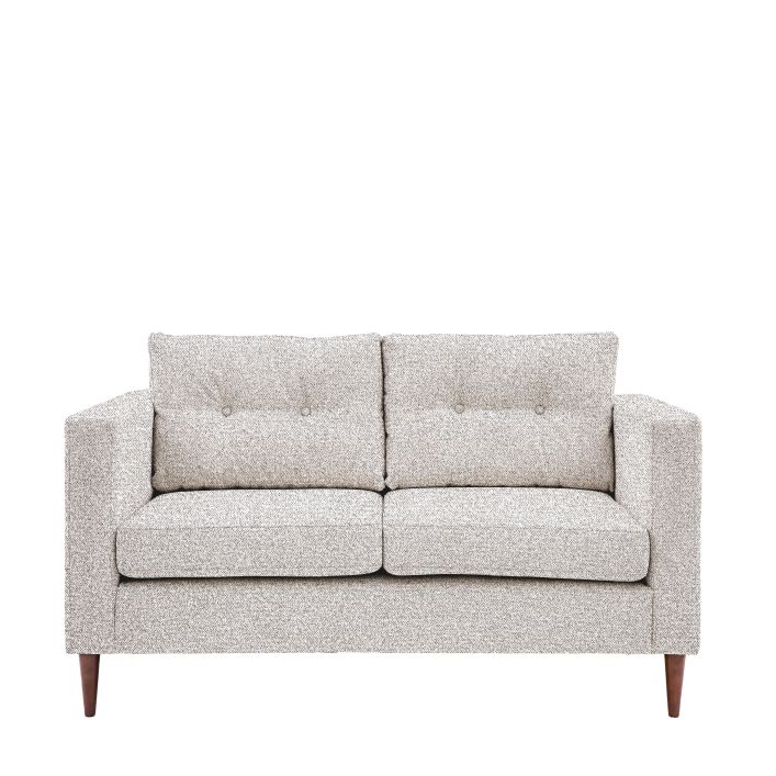 Assembly Required: Leg / Foot OnlyIdeal for contemporary style interiors, this lovely sofa features sleek lines with block arms and button detailing on the back cushions paired with elegant tapered wooden feet. It is upholstered in a lovely natural coloured fabric but is also available in green and grey. A matching armchair and 3-seater sofa are available.