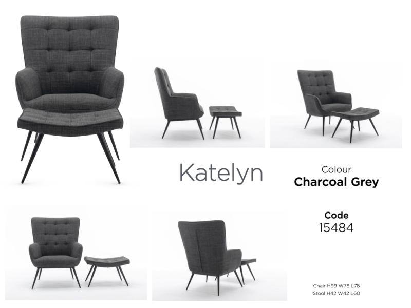 KatBexleyn Accent Chair With Stool – Charcoal Grey