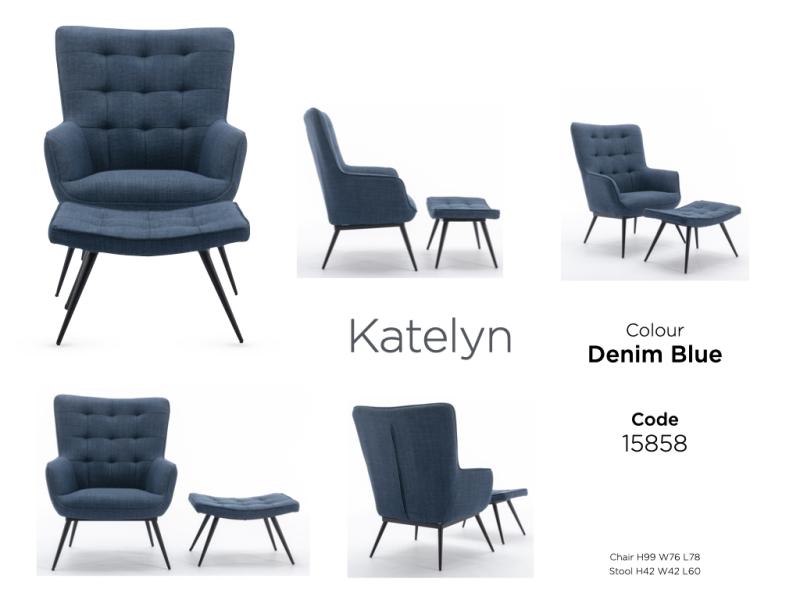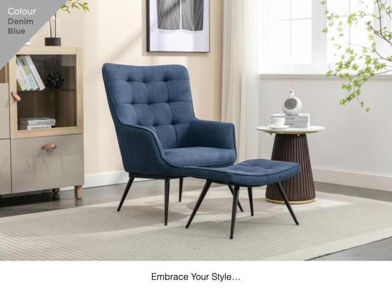 KatBexleyn Accent Chair With Stool – Denim Blue