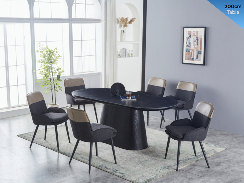 Make a bold statement in your dining space with this cutting-edge dining table, featuring a luxurious sintered stone tabletop available in a crisp white or dramatic black finish. At 200cm, the Calgary fixed-top design offers generous space for family dining or entertaining, while its modern aesthetic pairs effortlessly with a variety of stylish chair designs. Durable, elegant, and effortlessly contemporary—this table is built to impress.Make a bold statement in your dining space with this cutting-edge dining table, featuring a luxurious sintered stone tabletop available in a crisp white or dramatic black finish. At 200cm, the Calgary fixed-top design offers generous space for family dining or entertaining, while its modern aesthetic pairs effortlessly with a variety of stylish chair designs. Durable, elegant, and effortlessly contemporary—this table is built to impress.
