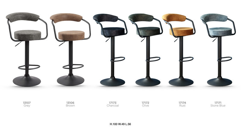 Elevate your space with our collection of modern gas lift Segovia — where comfort meets sophistication. Designed with a sleek black metal base and a smooth gas-lift mechanism, each stool offers effortless style and adjustable comfort. Choose from four refined fabric finishes — charcoal, olive, stone blue, and rust — to perfectly complement your contemporary kitchen or bar. Modern design, timeless appeal. Choose from the Paris , Remi or Hanna Collections, bringing just the right balance of color and comfort to any entertaining space.Elevate your space with our collection of modern gas lift Segovia — where comfort meets sophistication. Designed with a sleek black metal base and a smooth gas-lift mechanism, each stool offers effortless style and adjustable comfort. Choose from four refined fabric finishes — charcoal, olive, stone blue, and rust — to perfectly complement your contemporary kitchen or bar. Modern design, timeless appeal. Choose from the Paris , Remi or Hanna Collections, bringing just the right balance of color and comfort to any entertaining space.