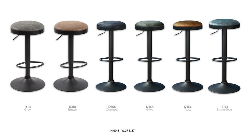 Elevate your space with our collection of modern gas lift Segovia — where comfort meets sophistication. Designed with a sleek black metal base and a smooth gas-lift mechanism, each stool offers effortless style and adjustable comfort. Choose from four refined fabric finishes — charcoal, olive, stone blue, and rust — to perfectly complement your contemporary kitchen or bar. Modern design, timeless appeal. Choose from the Paris , Remi or Hanna Collections, bringing just the right balance of color and comfort to any entertaining space.Elevate your space with our collection of modern gas lift Segovia — where comfort meets sophistication. Designed with a sleek black metal base and a smooth gas-lift mechanism, each stool offers effortless style and adjustable comfort. Choose from four refined fabric finishes — charcoal, olive, stone blue, and rust — to perfectly complement your contemporary kitchen or bar. Modern design, timeless appeal. Choose from the Paris , Remi or Hanna Collections, bringing just the right balance of color and comfort to any entertaining space.